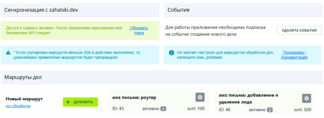 Внимание! Чтобы данный маршрут заработал, его нужно активировать (перейдя в его настройки).